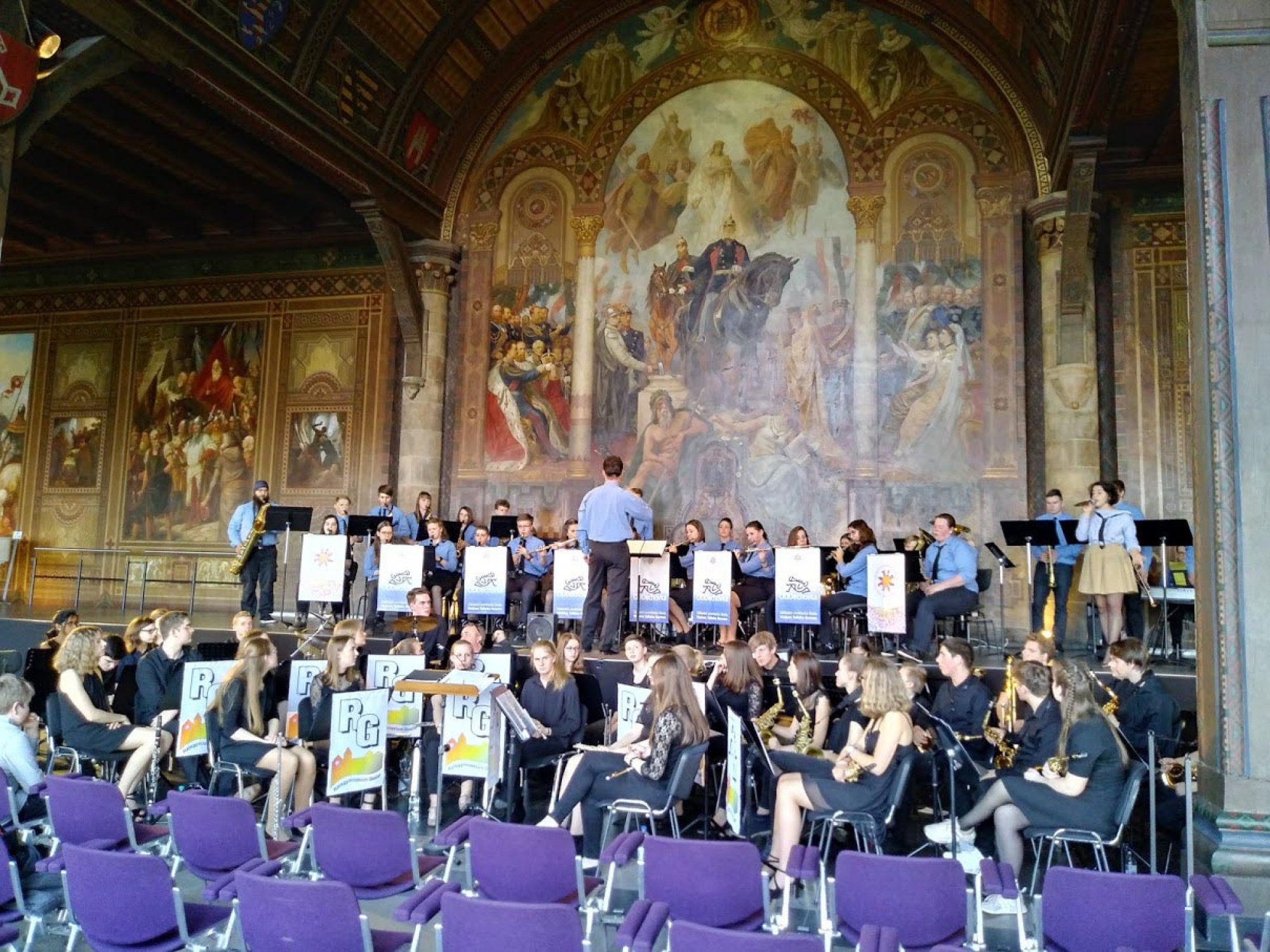 Nejočekávanějším a zároveň nejnáročnějším bodem naší návštěvy byl společný koncert v historické Aule Regis Císařského paláce v Goslaru. Specifická akustika impozantních prostor a hlediště zaplněné téměř 450 diváky vykouzlili nezaměnitelnou atmosféru. Koncert zahájil pochod, který hráli oba orchestry společně, následovala přivítací řeč ředitele Ratsgymnasium Hans-Petera Dresse a starosty města Olivera Junga. Oba shodně vyzdvihli významný kulturní i společenský přínos spolupráce mladých lidí dvou sousedících zemí v rámci Evropské unie.