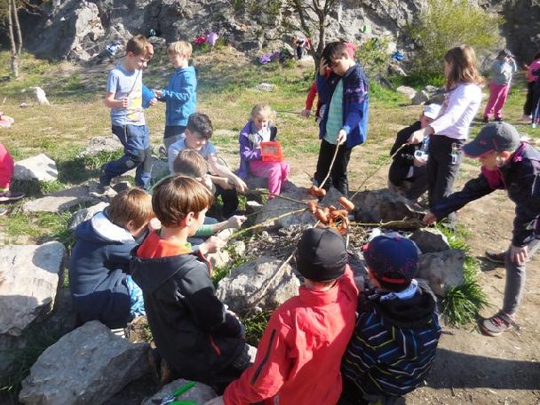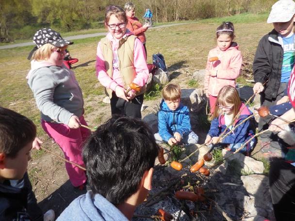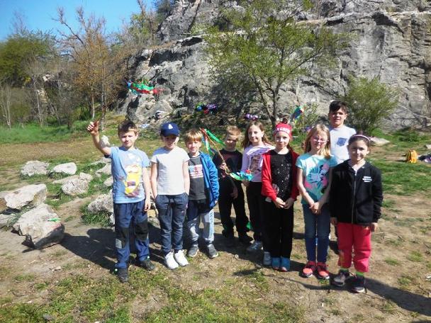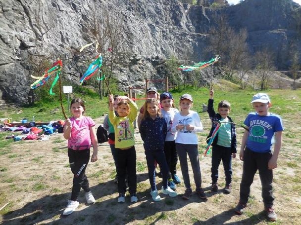 Je osm hodin ráno a děti školní družiny odchází společně směrem k Srbsku podél vody. Jejich cílem je lom Alkazar, tradiční místo, kde si užívají již mnoho let první den „velikonočních prázdnin“. Počasí nám přeje, sluníčko krásně hřeje, i když po ránu bylo trochu chladno. Jarní příroda se pomalu a jistě probouzí ze zimního spánku a my ji cestou pozorujeme. Na cestu nám zpívají kosáci, překřičují je sýkorky. V trávě na břehu Berounky se před námi schovává kormorán. Asi číhá na rybičku a nechce být rušen. O kousek dál vidíme ohryzaný kmen spadlého stromu. Asi možná bobr. Ale toho jsme neviděli. Na okolních skalách kvete svítivě žlutě tařice skalní. Ale těch jarních rostlinek můžeme vidět více. Prostě, paráda! Jaro v plné kráse. Cesta nám utekla díky pozorování přírody velmi rychle a my se již nacházíme v lomu Alkazar. Odkládáme si batohy a hurá! Jdeme si připravit ohniště a rozdělat ohýnek na opékání špekáčků. Každý kousek je znát a my máme ohniště udělané a jde se na věc. Opékání! Potom svačinka a pletení pomlázky. Vzhledem k tomu, že bylo málo dobrých proutků, uděláme několik pomlázek a ty si zaslouží nejlepší soutěžící. Máme připraveno několik soutěží. Rozdělujeme se na dvě skupiny. Ty si ze svého kolektivu vyberou dvojici, která je bude reprezentovat. První soutěží je bludiště, kdy se musí zajíček dostat nejkratší cestou ke košíku s vejci. Nejrychlejší dvojice dostává za soutěž upletenou pomlázku. Dvojice se vrací zpět a družstvo jde reprezentovat další dvojice. Na ní čeká složitější bludiště, kdy se malé kuřátko musí co nejrychleji dostat ke kytici.  Vítězná dvojice a dvojice na druhém místě opět za odměnu obdržela upletenou pomlázku.  Třetí soutěž je složitější. Přihnal se velký vítr a rozbil vejce na mnoho kousků. Naším úkolem ve dvojici z každé skupiny složit co nejrychleji obrázek tohoto vajíčka. Vítězná dvojice odměnou opět získává pletenou pomlázku. Poslední pomlázku získala Bára Prokopová, která aktivně pomáhala při pletení pomlázek. Čas se naplňuje a my budeme muset odcházet, abychom byli včas u školy. Ještě tři poslední hry na schovávanou a návrat zpět. Krásný výlet do přírody s překrásným počasím se vydařil, cestou ještě sledujeme přírodu a nacházíme i malou užovku. Sledujeme ji, ale jen chvilinku. Za hodinku chůze jsme již u školy, kde čekají rodiče.  Rozcházíme se do svých domovů a navzájem si přejeme krásné Velikonoce. I my přejeme všem pěkné Velikonoce plné sluníčka.