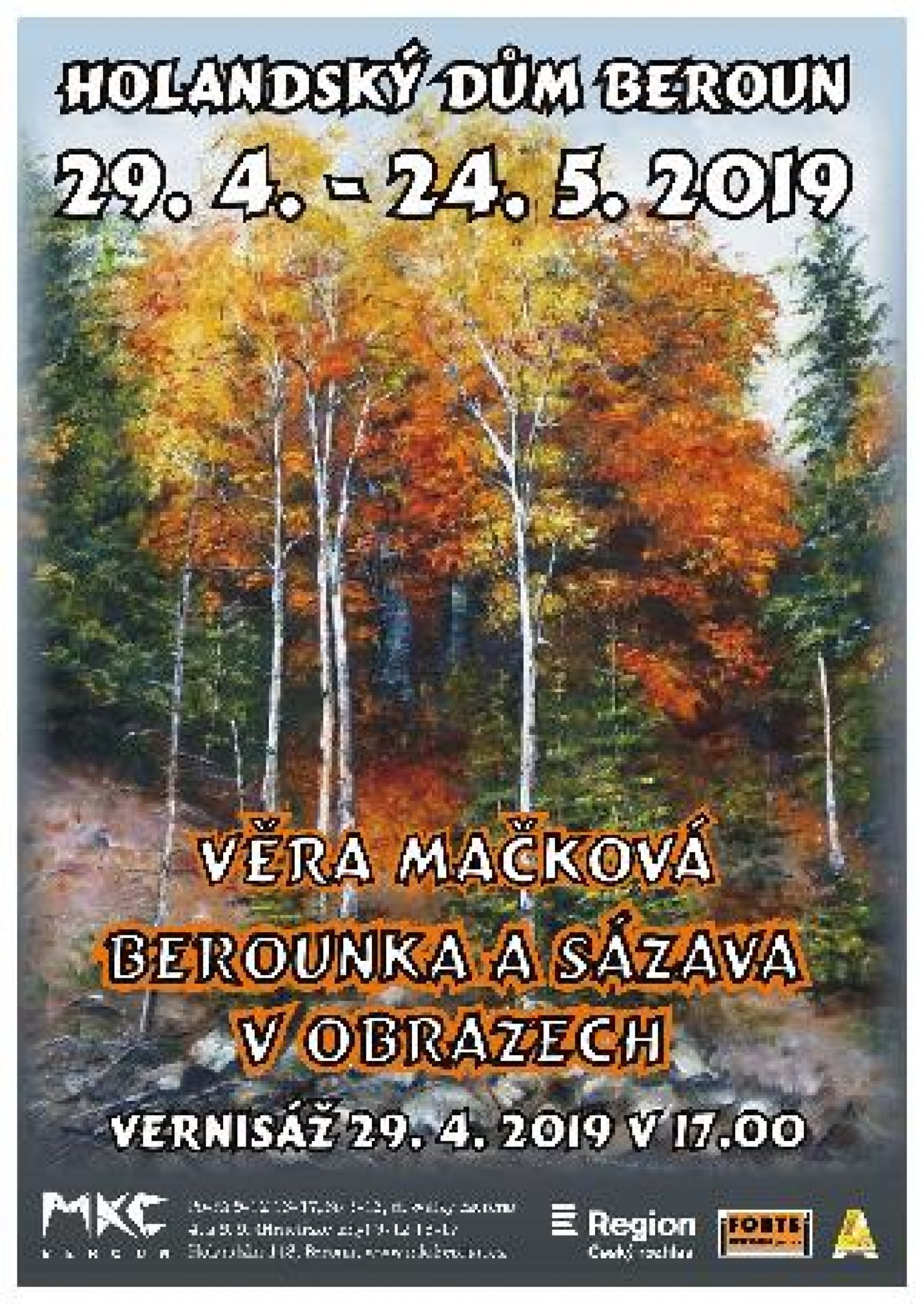 Pozvánka na vernisáž výstavy Věry Mačkové v Holandském domě 29. 4. 2019 v 17 hodin.