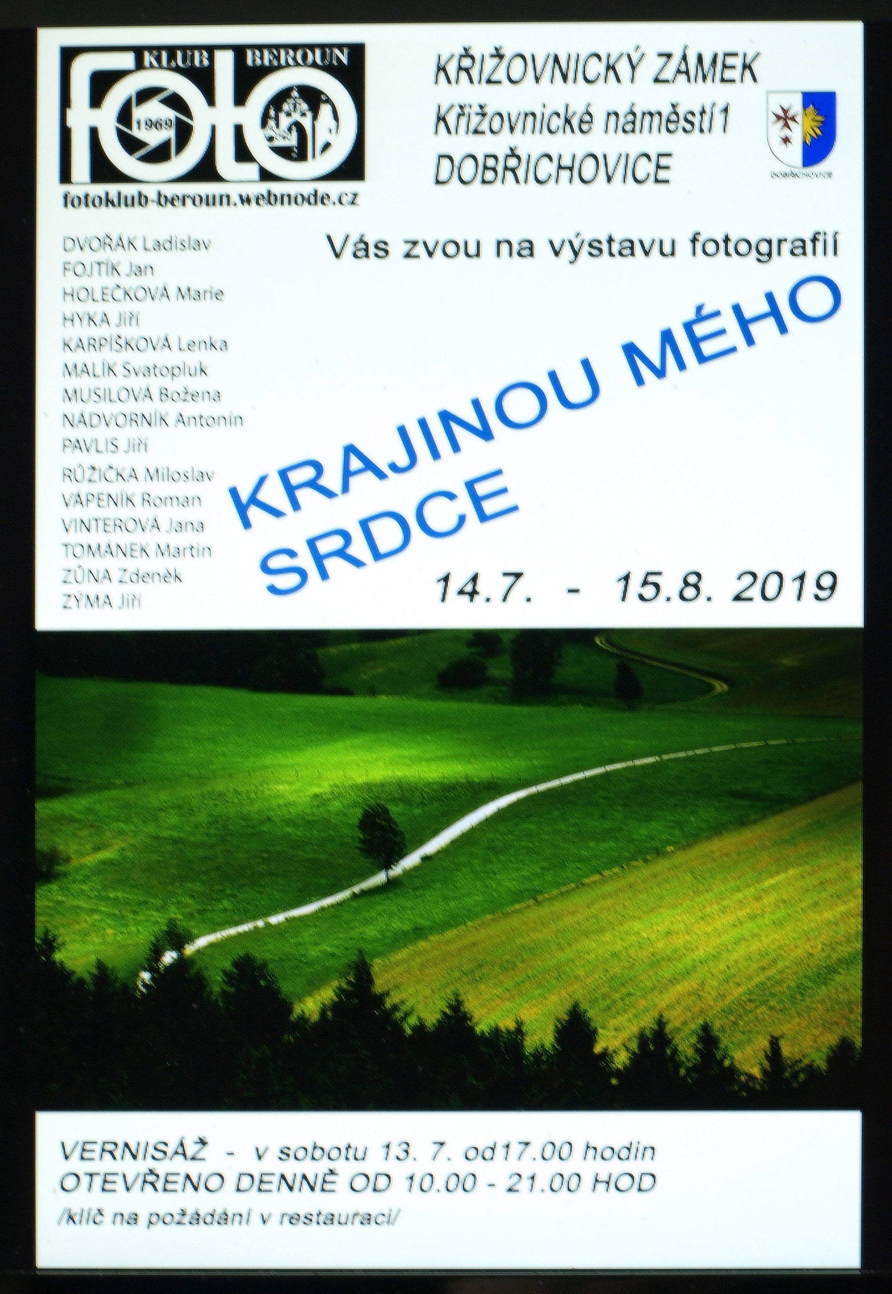 V sobotu 13. července 2019 v 17 hodin se v zámku v Dobřichovicích otevírá výstava fotografií členů Fotoklubu Beroun.
