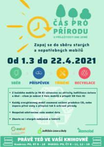 Sběr probíhá do 22. 4. v rámci Dne země v kampani Čas pro přírodu a máme v ní společný cíl: sesbírat 5 tisíc mobilů a tím přispět 50 tisíc Kč Jedličkovu ústavu a školám. Více informací naleznete na webových stránkách https://remobil.cz/casproprirodu/