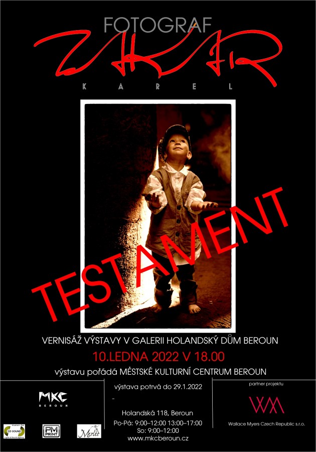 To jsou slova Karla Zakara, fotografa, který právě vystavuje v berounském Holandském domě. V galerii Holandského domu vystavuje již potřetí, tentokrát pod názvem TESTAMENT. Ucelený soubor fotografií vznikal v prostředí bývalých králodvorských železáren. Fotografie, v nichž jsou nakupeny různé významy, které napoprvé možná ani neodhalíte, vás přesto vtáhnou do děje. Fotografie jsou doplněny v podstatě filozofujícími názvy – jsou to citáty z písňových textů maďarské rockové skupiny Omega (až na jeden), z jejich desky stejného názvu. V době přípravy vystavovaných fotografií zemřeli dva členové skupiny a těsně před dokončením (v prosinci loňského roku) zemřel jejich zpěvák. Karel Zakar to pokládá za symbol, a proto považuje výstavu Testament za první krok k uzavření své fotokariéry a za svou poslední výstavu.