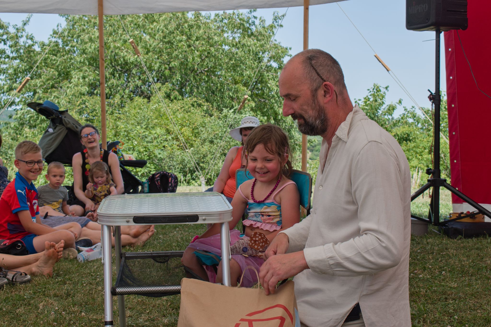 Během dne se mohli malí i velcí diváci zúčastnit mnoha doprovodných akcí. Loutkoviště přivezlo Česko americké divadlo Waxving theatre a malí i velcí si mohli hrát na několika scénách svoje verze pohádek. Jednu z dílen zajistila Kateřina Molčíková, přivezla netradiční workshop plný kamenů. Na plotě si mohli návštěvníci prohlédnout výstavu fotek Miloše Samka a ilustrací Zuzky Šmídové a u Zuzky si zároveň mohli vyrobit malou myš z ponožky.