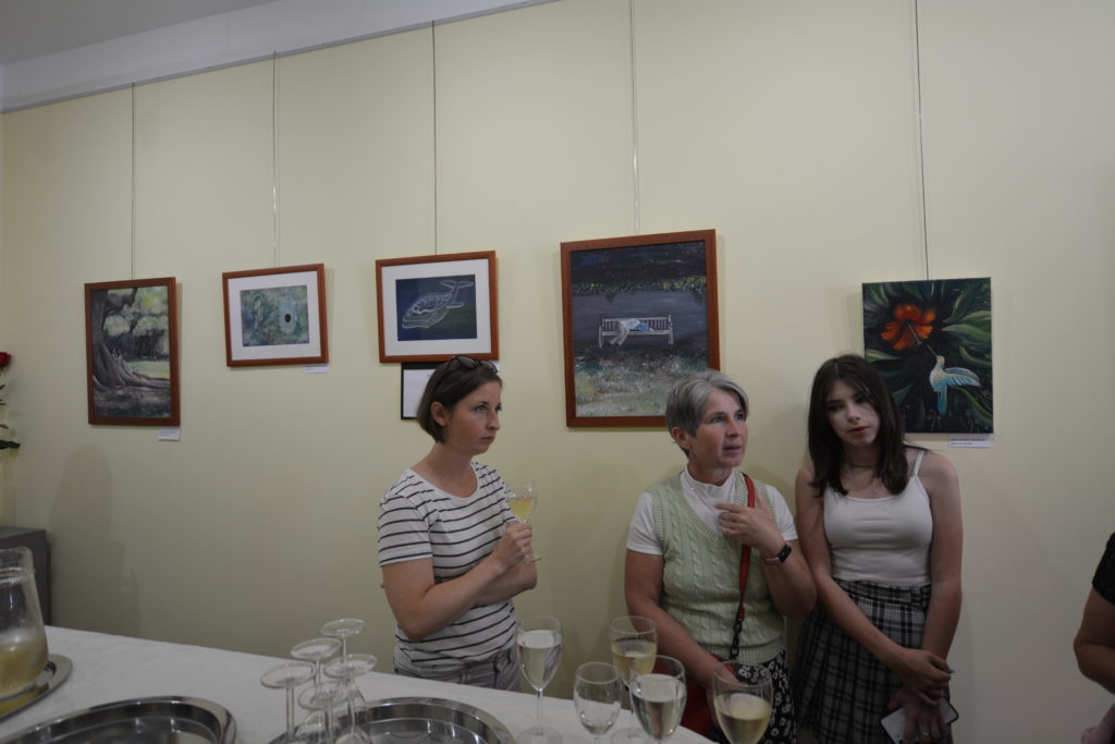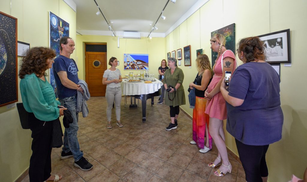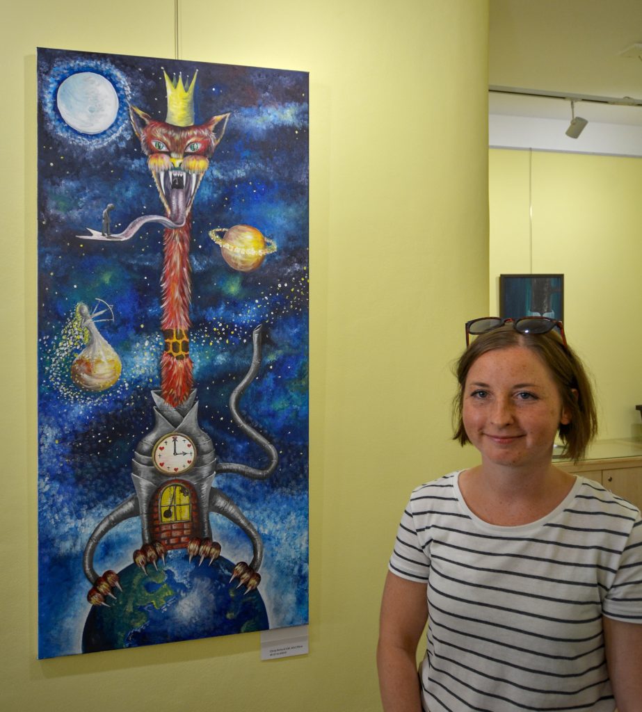 V galerii Holandského domu vystavuje své obrazy (převážně akryl na plátně, ale i grafiku) mladá malířka Veronika Štorkánová. Sama o své tvorbě říká: „V malbě tvořím světy a pravdy, které procházejí mým okem a ruka je zhmotňuje pomocí barev. Svět idejí pletený z pravd i nepravd. Snová říše fauny a flóry stále hledající novou formu a cestu vyobrazení říše plné fantazie“. Fotky jsou z vernisáže, která se uskutečnila v pondělí 11.07.