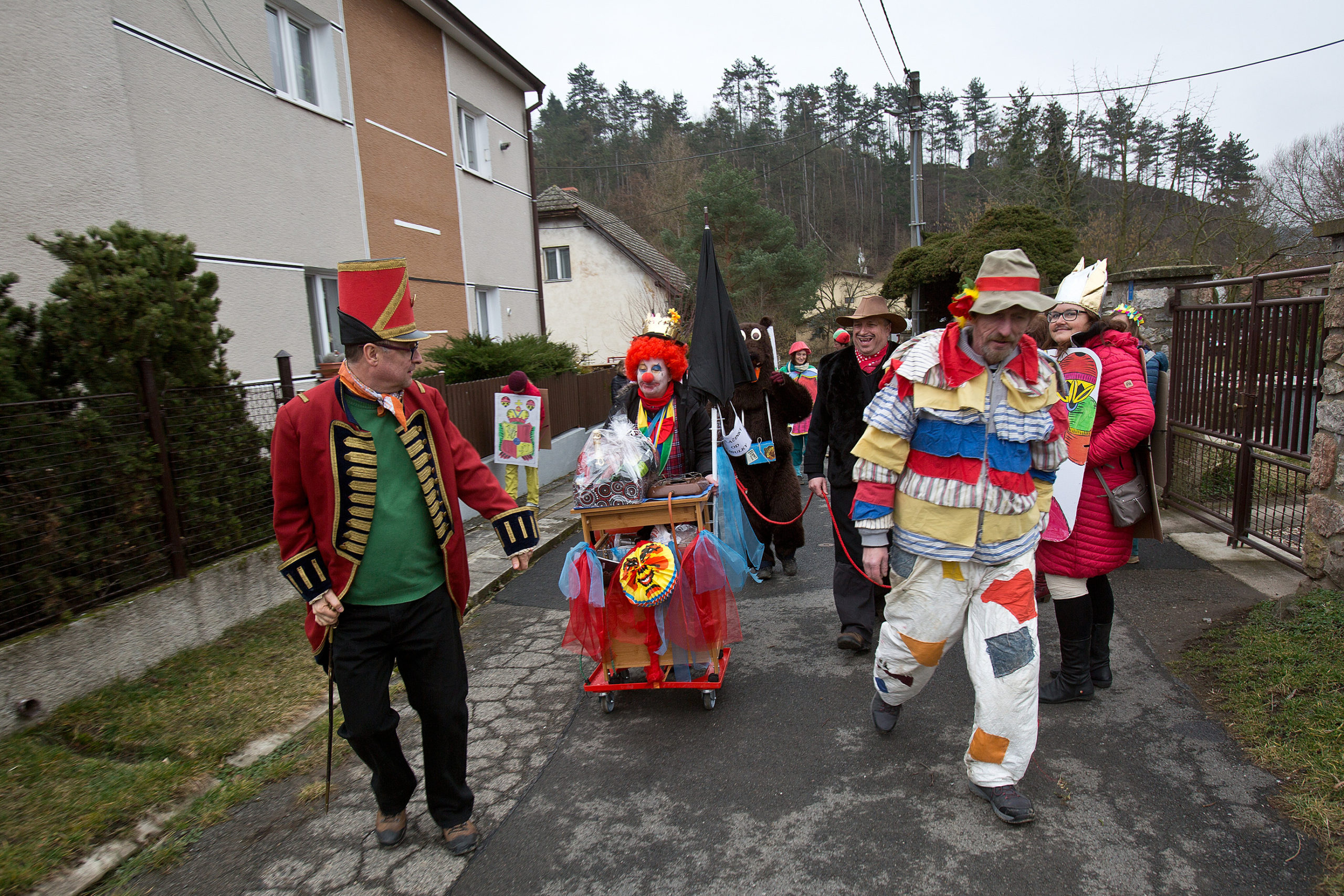 Nakonec bude symbolicky pochován Masopust a oceněny ty nejnápaditější maškary. K účasti v soutěži o nejhezčí či nejoriginálnější převlek jsou zváni všichni, místní i přespolní. Hodnotnou cenu autorovi či autorům vítězné masky předá místopředseda Senátu Jiří Oberfalzer, který nad bujarými oslavami převzal záštitu a sám se jich aktivně zúčastní. Poté se vydá na obchůzku obcí průvod v čele s kapelou a kvartetem »hlavních« postav: medvědem, medvědářem, policajtem i Masopustem-Bakchem. Všichni budou ochutnávat koblihy, škvarkové placky, uzené maso, pálenku a další dobroty, které pro ně připraví místní hospodyňky a hospodáři. V roce 2020 pohoštění průvodu nabídlo rekordních 45 (!) domácností, loni, jich bylo čtyřicet.