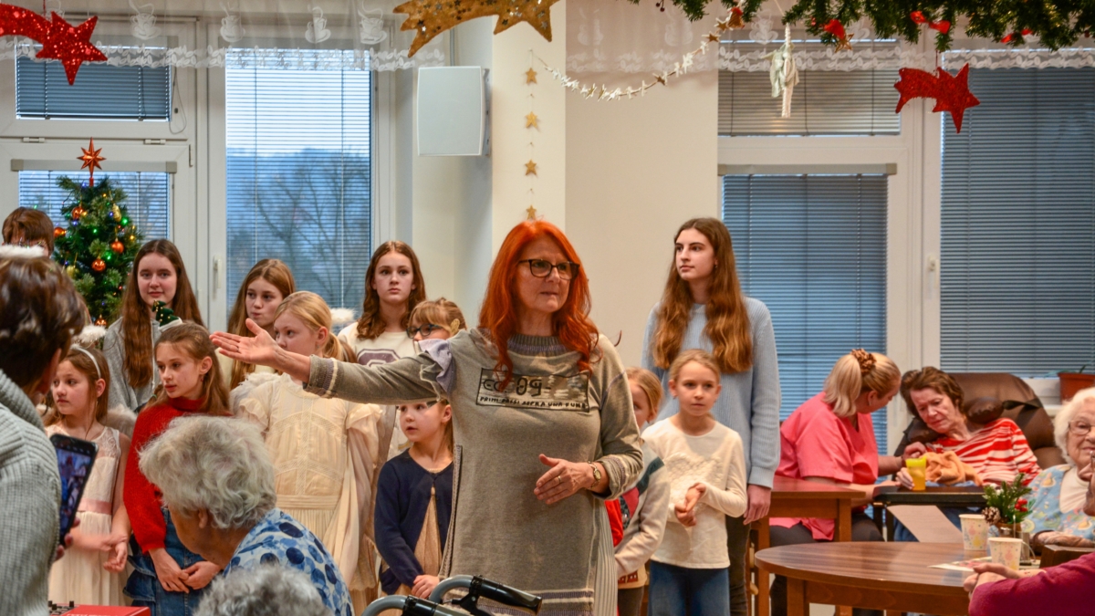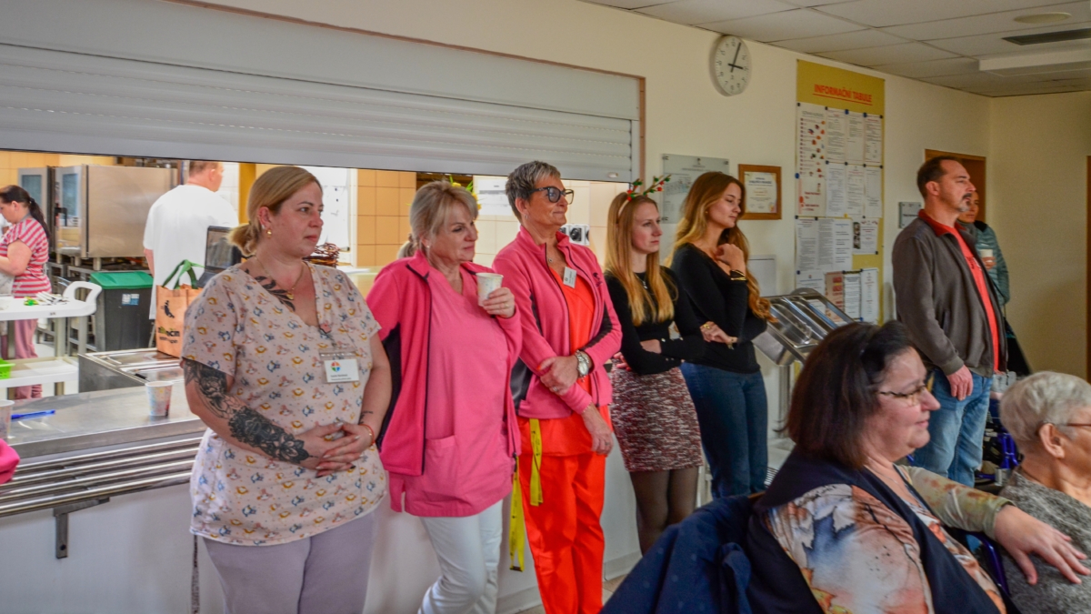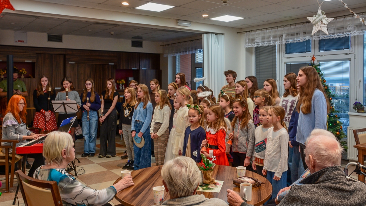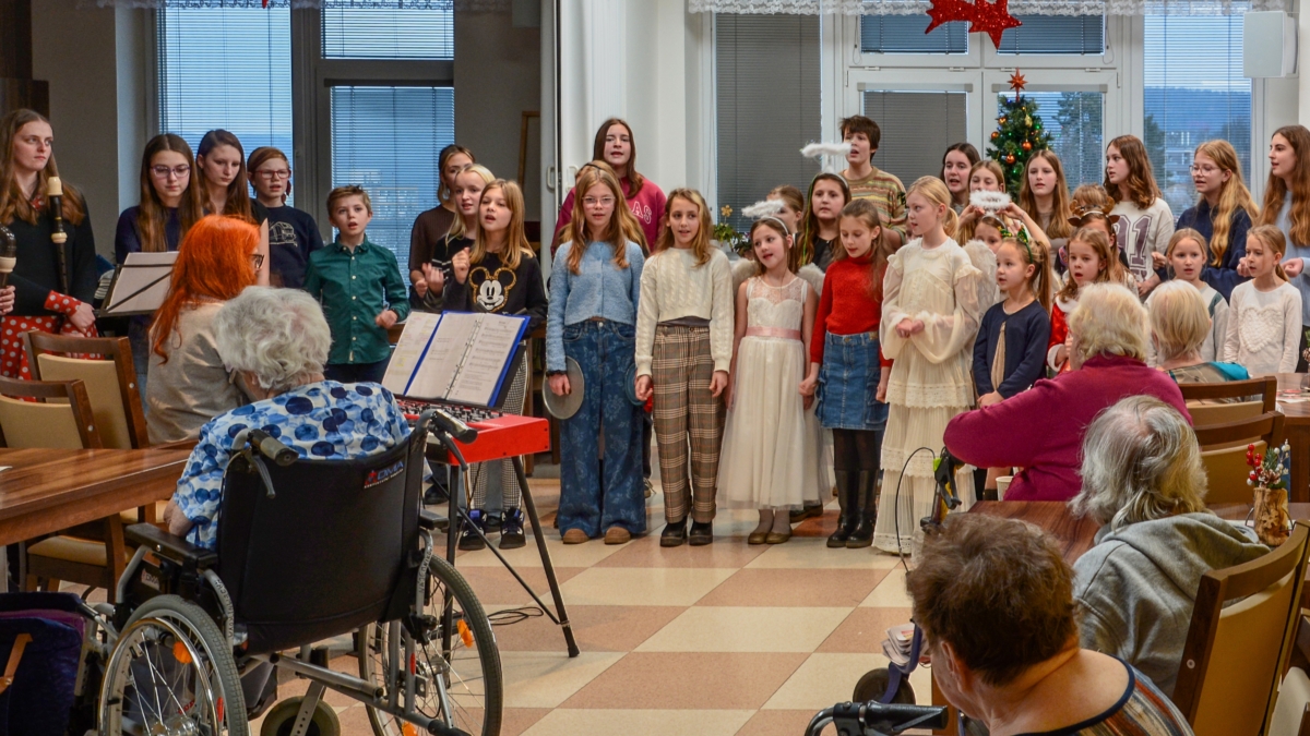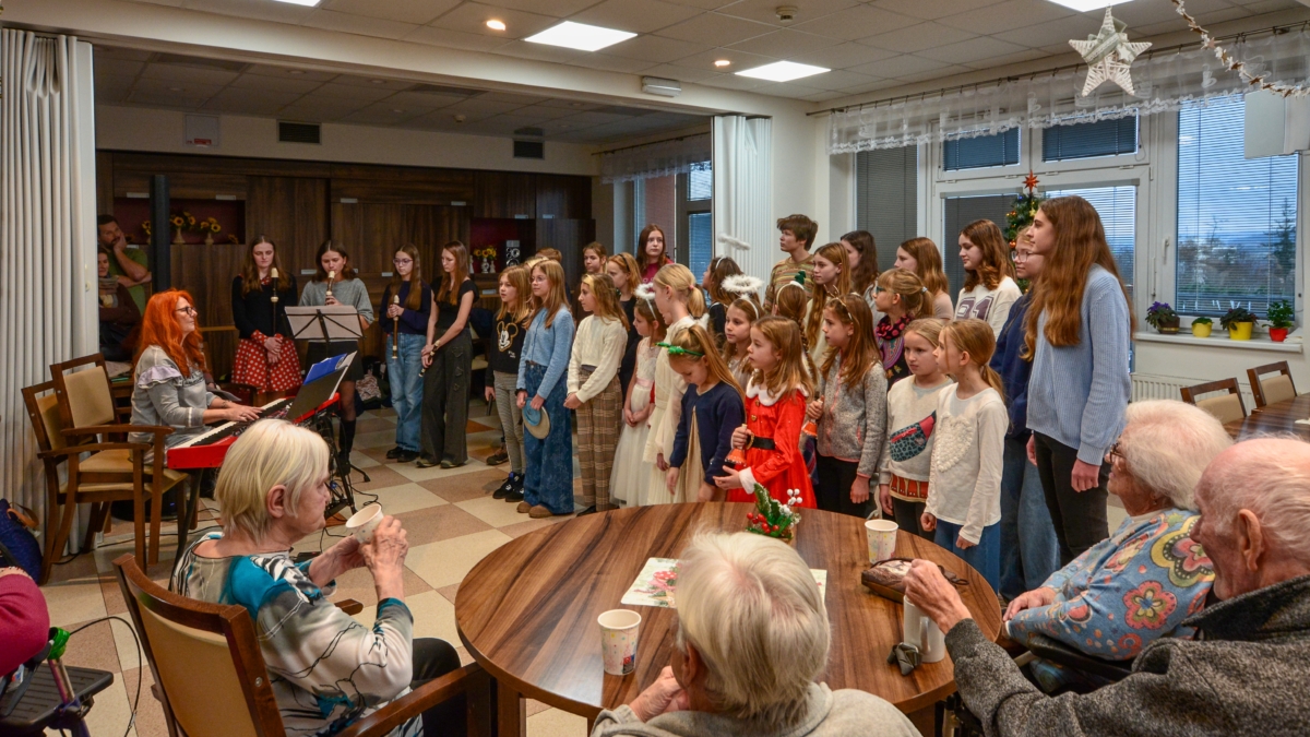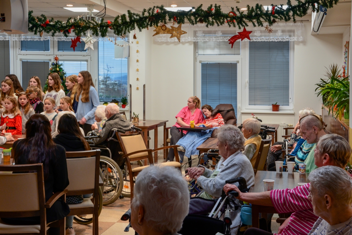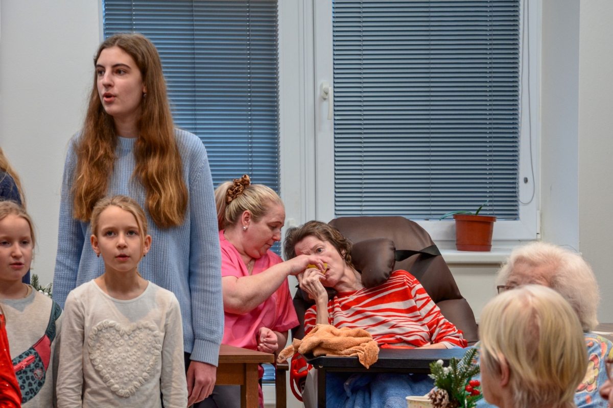 Zpěv „Lentilek“ samozřejmě poslouchali i zaměstnanci domova, ale každou chvíli někdo z nich odběhl pomoci některému klientovi se zdravotním omezením. O obyvatele domova se starají s obdivuhodnou trpělivostí a někdy až s dojemnou péčí, což bylo vidět i během hudebního vystoupení.