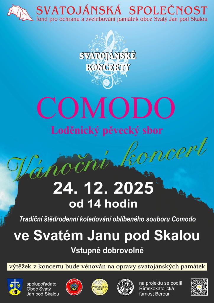Na Štědrý den ve středu 24. prosince je od 14 hodin připraveno Vánoční zpívání se sborem COMODO z Loděnic, které se také uskuteční prostorách kostela ve Svátém Jánu pod Skalou.
