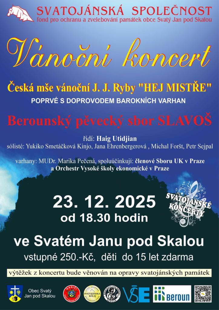 Ve Svatém Jánu pod Skalou se v úterý 23. prosince od 18:30 hodin uskuteční nastudování České mše vánoční Jana Jakuba Ryby v podání orchestru VŠE a sboru pěveckého sboru Slavoš – tentokrát snad už s opravdickými varhanami v kostele svatého Jana Křtitele.